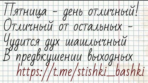 #неделя #пятница #шашлыки #стишкиизбашки Стишок каждый день для настроения @stishki_bashki 📹 - видеостишки тут 👈 🙊 - а тут можно комментировать 👈 Поделитесь стишком с друзьями