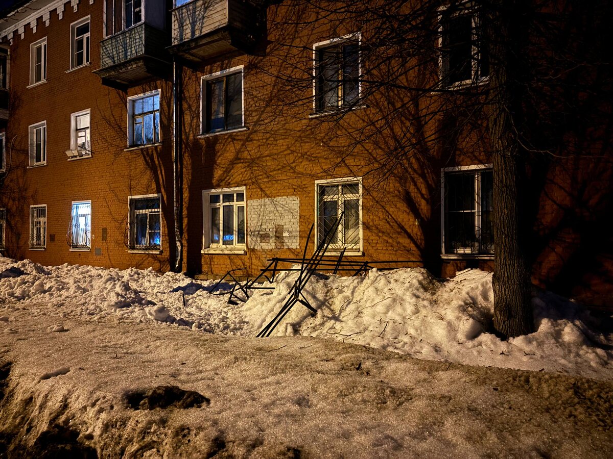 Жители дома № 19 на ул. Мира в Туле третий день ждут уборки снега, рухнувшего с крыши