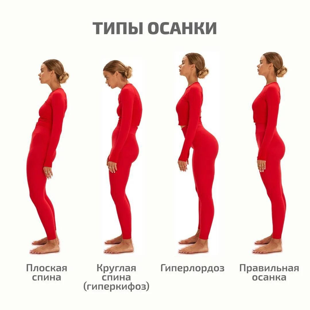 ? Правильная осанка - это ось позвоночника с естественными изгибами, вокруг которой расположены части тела, равномерно с каждой стороны: лопатки, руки, тазовые половинки, бедренные кости и ТД.. При этом ось венчает голова, под которой грудная клетка, таз, ноги и стопы. В пилатесе мы стремимся к нейтрали. Это удобное, в данный момент, положение позвоночника, частей тела, создающее комфорт и поддержку. Почему мы стремимся к нейтрали? А не изо всех сил впихиваем себя в идеальную осанку. Для многих людей идеально = напряжение. Вспомните новые джинсы - идеально держат, но туго. Когда джинсы разносятся, будет комфортно. Так и мы стремимся к нейтрали, но в каждом случае ➡️ эта нейтраль будет своя⤵️ И каждый раз, улучшая через движение тело, мы влияем и на нейтраль. Она становится более удобной. И только тогда можно говорить об идеальной осанке. 😉Помните, каждый человек уникален. Картинки - лишь показатель привычки. Которую мы меняем постепенно. 😉Осанка как любимые джинсы становится, чу