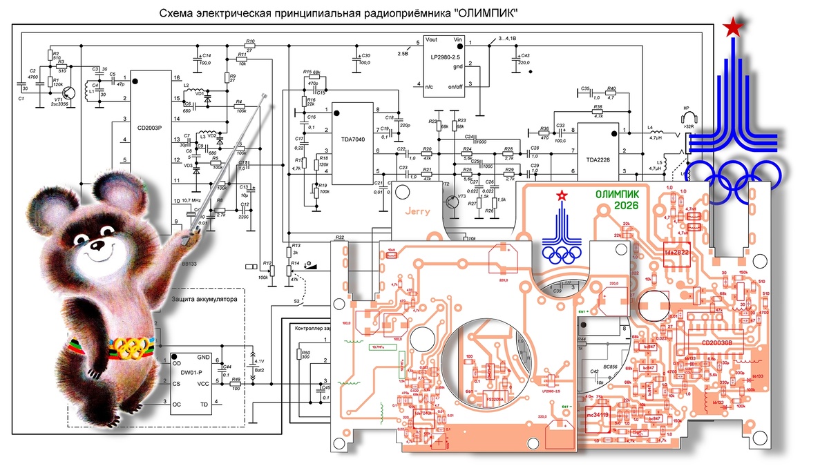 Вот полная схема радиоприёмника "ОЛИМПИК"