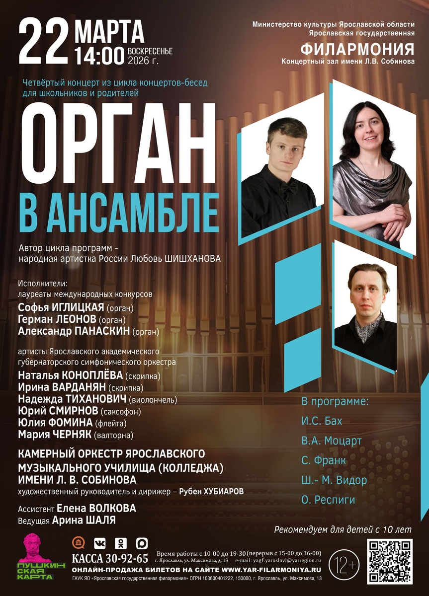 📢 Солистка-органистка Ярославской государственной филармонии Софья Иглицкая приглашает ВАС на концерт «Орган в ансамбле» 🗓 22 марта в