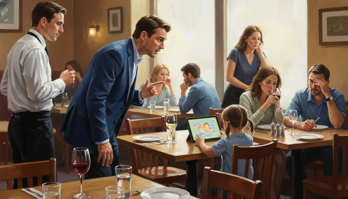 Представьте: пятница. Конец недели, которая вытащила из вас всё. Вы наконец добрались до любимого ресторана, сделали заказ, откинулись на спинку кресла — и тут за соседним столиком девочка лет шести включила мультик на полную громкость. Её брат носится между столиками. Уже третий раз задевает ваш стул. Раздражение поднимается откуда-то снизу, горячее и совершенно законное. И вот здесь происходит то, о чём мало кто думает. Большинство из нас делают одно из двух: либо молчат и кипят внутри, либо говорят — и получают в ответ оборонительную реакцию родителей. Оба варианта проигрышные. Оба вы уже, скорее всего, пробовали. Но есть третий путь. И он работает именно потому, что большинство людей о нём не думает. Подозвать официанта. Не чтобы пожаловаться. Не чтобы устроить сцену. А чтобы попросить его урегулировать ситуацию. В ресторане есть правила. Замечание из уст сотрудника заведения — это не нападение на семью, не оценка чьих-то детей. Это просто стандарт места. Родителям легче принять ег