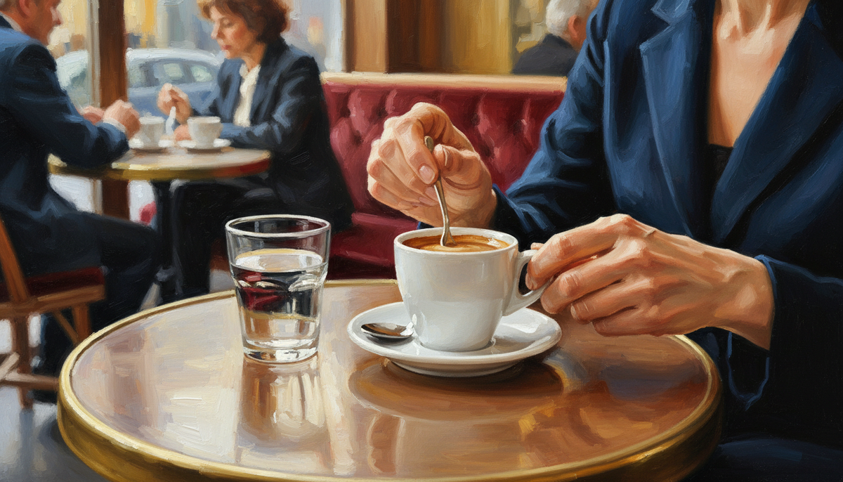 Вы ещё не успели открыть рот — а вас уже прочитали. Именно так работает кофейный этикет. Не как набор правил из учебника хороших манер, а как живой язык, на котором говорят жесты, температура, очерёдность глотков. И этот язык звучит громче слов — особенно там, где слова тщательно выверены. Возьмём эспрессо. Его подают в маленькой чашке с толстыми стенками — и это не прихоть дизайнера. Толстые стенки удерживают тепло и концентрируют аромат. Рядом всегда стакан воды. Большинство думает: запить горечь. На самом деле — очистить вкусовые рецепторы до первого глотка. Вода здесь как настройка инструмента перед концертом: ненавязчивая, но обязательная. Перемешивают эспрессо вертикально, пару раз, без кругов. Цель — соединить плотные и лёгкие фракции кофе, которые оседают по-разному. Никакого «пропеллера». Никакого звона ложки о края. Это не педантизм — это точность. И вот первый момент, где большинство сбивается. Ложку после перемешивания кладут на блюдце. Не оставляют в чашке. Не облизывают.