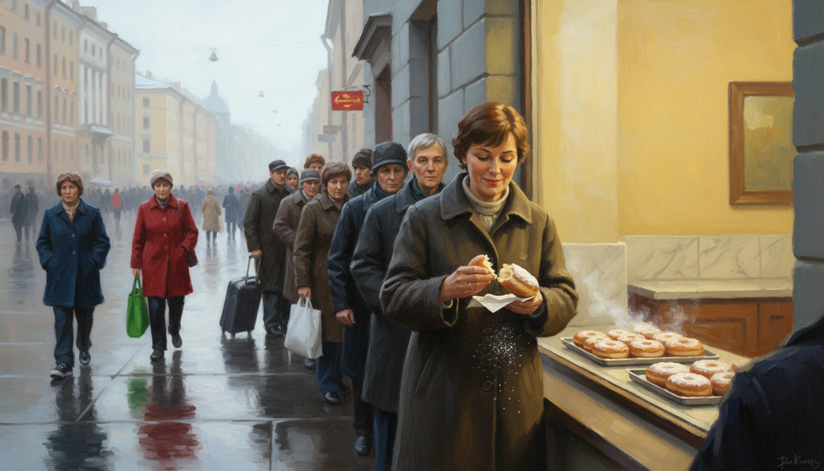 Есть в Петербурге очередь, которая не заканчивается с 1958 года. Не ночью. Не в кризис. Никогда. За тем, что внутри, стоят студенты в стоптанных кроссовках и пенсионеры с авоськами, туристы с чемоданами и местные, забежавшие между делами. Стоят на морозе, под дождём, в слякоть. И это не хипстерское кафе с очередью напоказ. Это пышечная на Большой Конюшенной — место, которое умудрилось не измениться ни при Хрущёве, ни при Горбачёве, ни при TikTok. И вот тут история делает кое-что интересное. Почему маленькое кольцо из дрожжевого теста с сахарной пудрой оказалось крепче всего, что менялось вокруг него за семьдесят лет? Пышечная на Конюшенной открылась в 1958 году — в эпоху хрущёвских реформ, когда советский общепит переживал своеобразную оттепель. Небольшие кафе и закусочные появлялись по всему Ленинграду как альтернатива громоздким столовым. Большинство из них не пережили следующего десятилетия. Эта — пережила всё. Рецепт здесь не менялся. Интерьер — тоже. Мраморные столешницы, запах ра