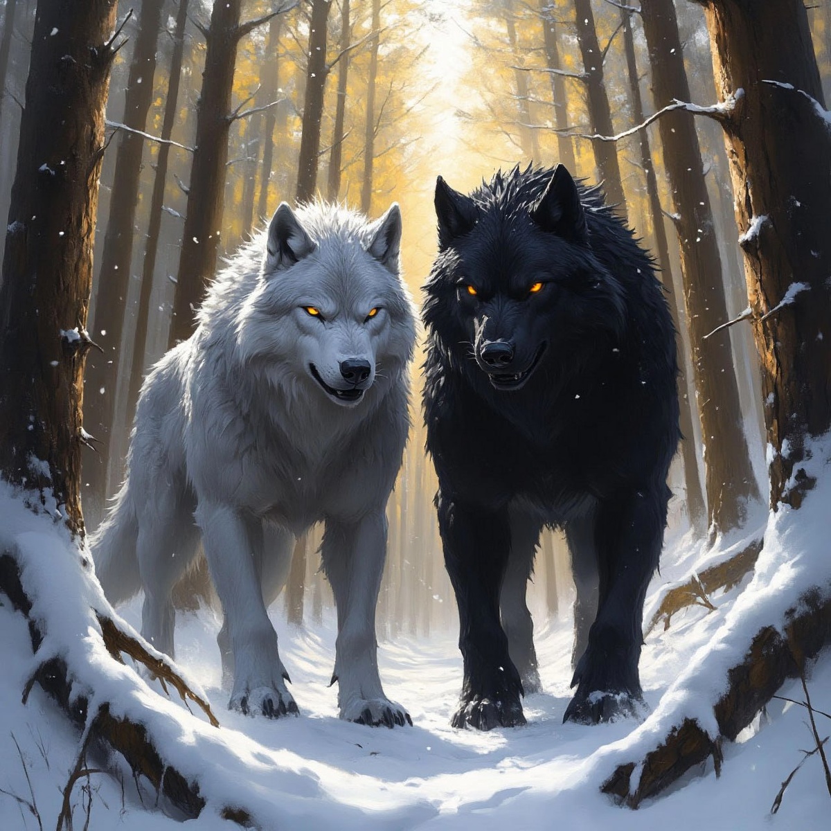 Лес принял их в свои ледяные объятия. Снег был глубоким, ветер пронизывающим. Варнар и Рея двигались в волчьем облике, так было легче преодолевать расстояния. Черная и серебристая шерсть бок о бок – зрелище, которое могло бы показаться невероятным.