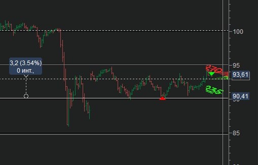 Пока инструменты стоят, в нефти хоть какой то движ. Ур 90 по нефти указывал утром. Расчет на тех отскок о котором писал утром. Выход по цели Итог +3.5%