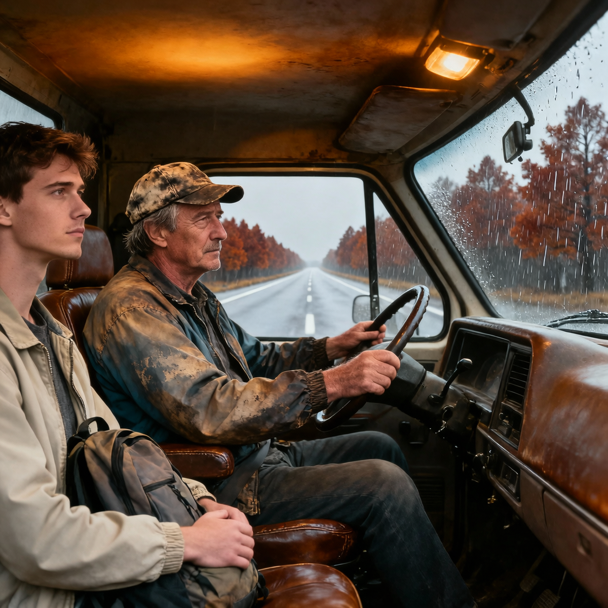 Геннадий увидел его издалека – тёмная фигура на обочине, вытянутая рука. Октябрь выдался серым, и парень стоял прямо под моросью, без зонта, в тонкой куртке. Геннадий сбросил скорость. Дальнобойщик на пустой трассе – это почти автобус. Останавливаешься не от доброты. От привычки.