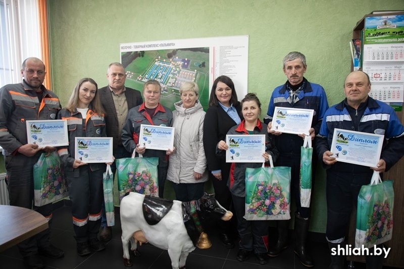 В рамках республиканской профсоюзной акции «Наш животновод» на предприятии ООО «Дэйрифарм» состоялось поздравление лучших работников отрасли. Во вторник, 10 марта, с трудовыми успехами животноводов поздравили председатель профсоюза работников АПК Светлана Шавлюк, заместитель начальника управления сельского хозяйства и продовольствия – начальник отдела животноводства райисполкома Елена Гладун и заместитель директора по животноводству предприятия Иван Шловенец. Хозяйство ООО «Дэйрифарм» – одно из молодых в Сморгонском районе. Однако, несмотря на это, оно уже демонстрирует уверенные успехи как в растениеводстве, так и в животноводстве. Секрет достижений – в грамотной организации труда и активном внедрении современных технологий, что создает достойные условия для работы специалистов. Обращаясь к собравшимся, Светлана Шавлюк подчеркнула, что награды сегодня вручаются действительно заслуженно. Она отметила, что нынешняя зима стала серьезным испытанием для специалистов животноводческой отрасл