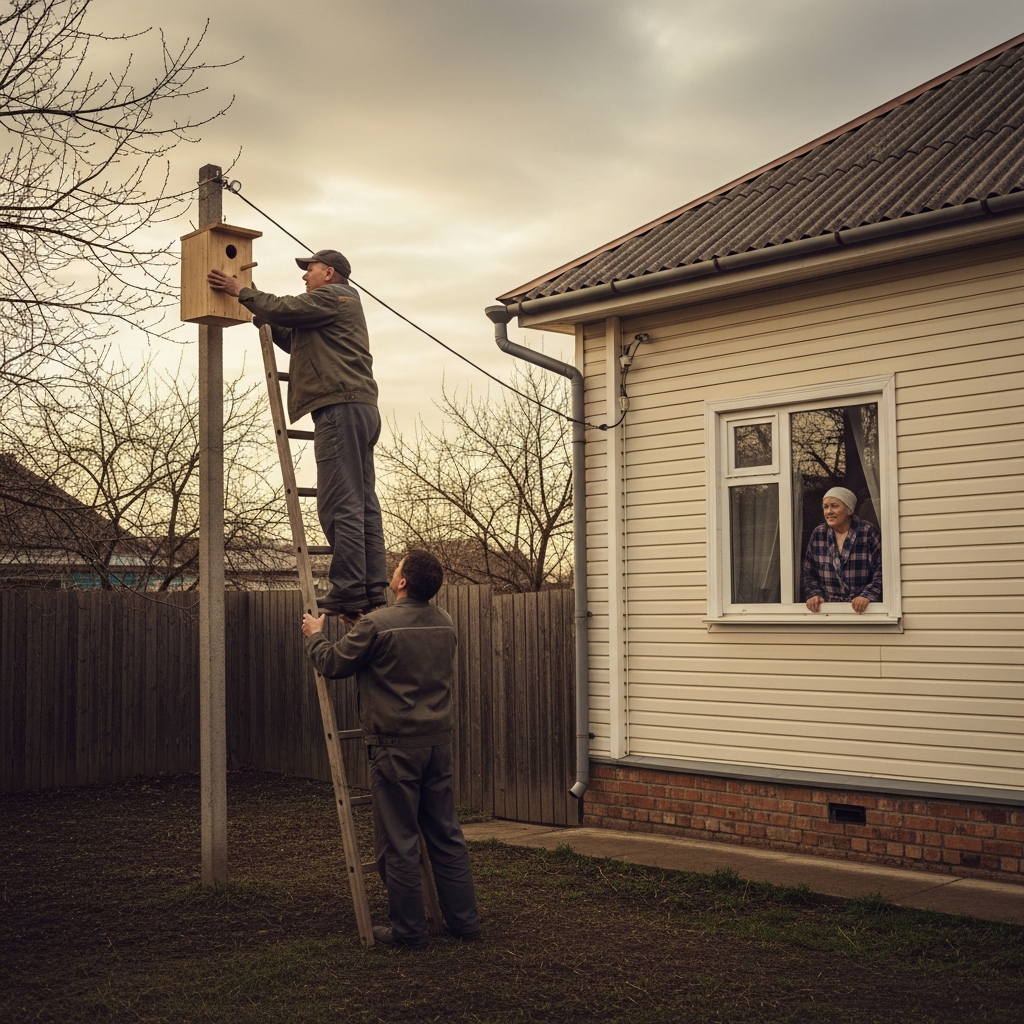 Мать отошла от окна. Я стоял во дворе. Апрельское солнце пробилось сквозь облака – тусклое, но тёплое. Скворечник висел ровно. Новый, из сосновых досок, с запахом смолы. На том же месте, где висел старый.