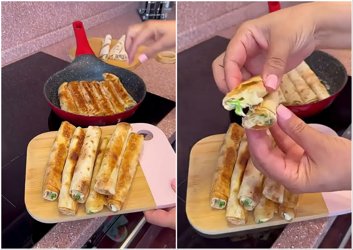 📸 Сворачиваем лаваш в аккуратные колбаски.