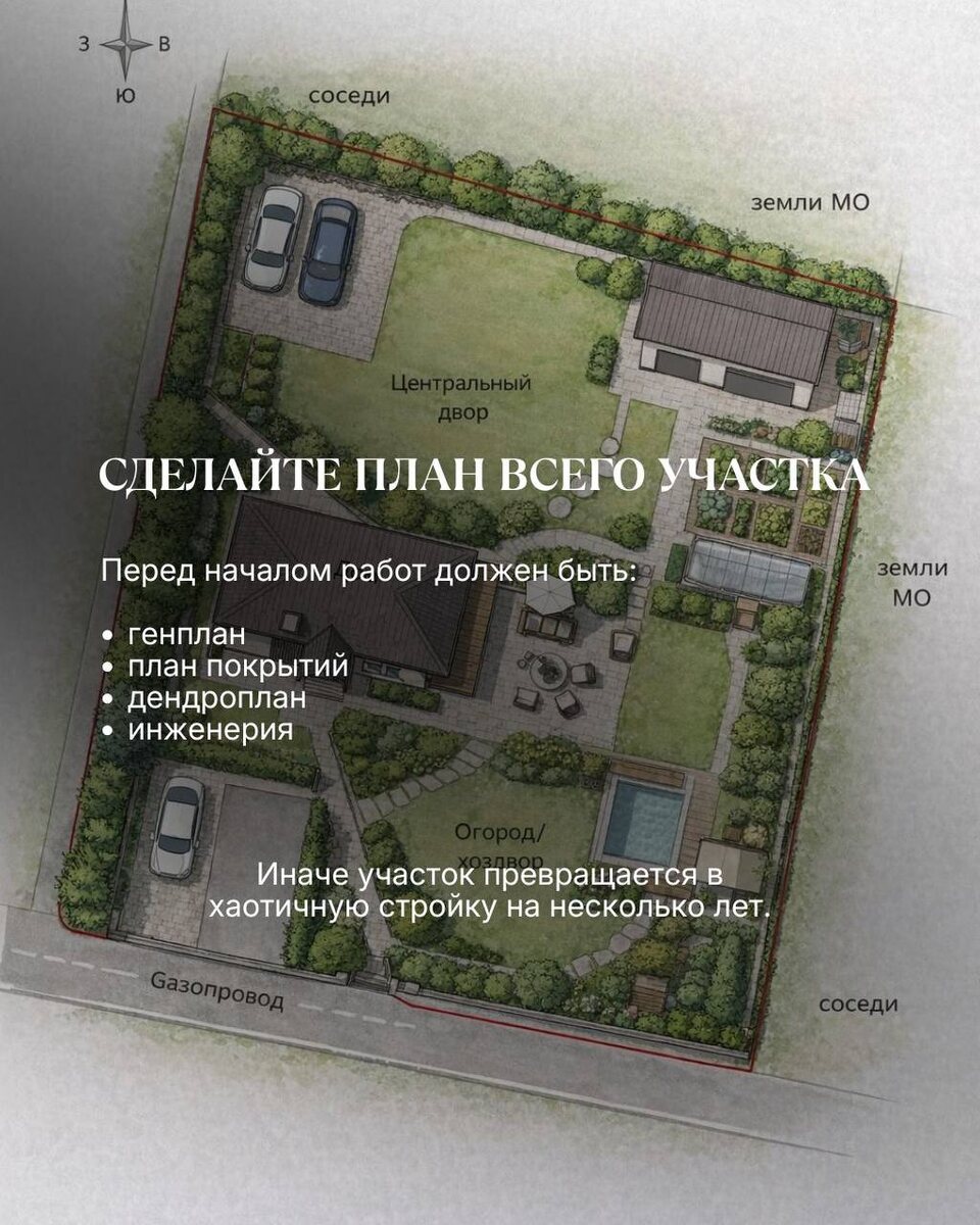 Есть вещи, которые важно сделать сразу, иначе позже это обойдётся намного дороже. В карусели собрали 10 шагов, о которых часто забывают новые владельцы дома. Сохраняйте пост, чтобы не потерять ✔ И если Вы хотите, чтобы участок был красивым, удобным и продуманным на годы вперёд — мы с удовольствием поможем Вам с проектом. 🌿