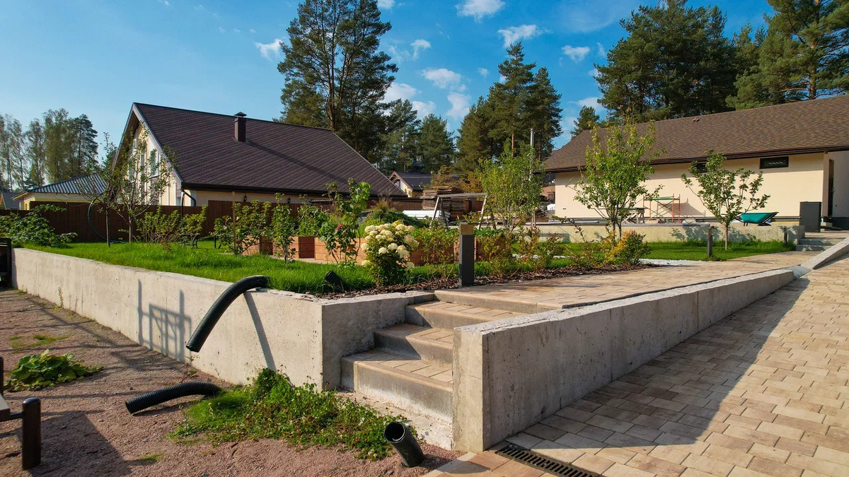Когда дом закрыт контуром и основные строительные работы завершены, начинается первый ландшафтный этап.