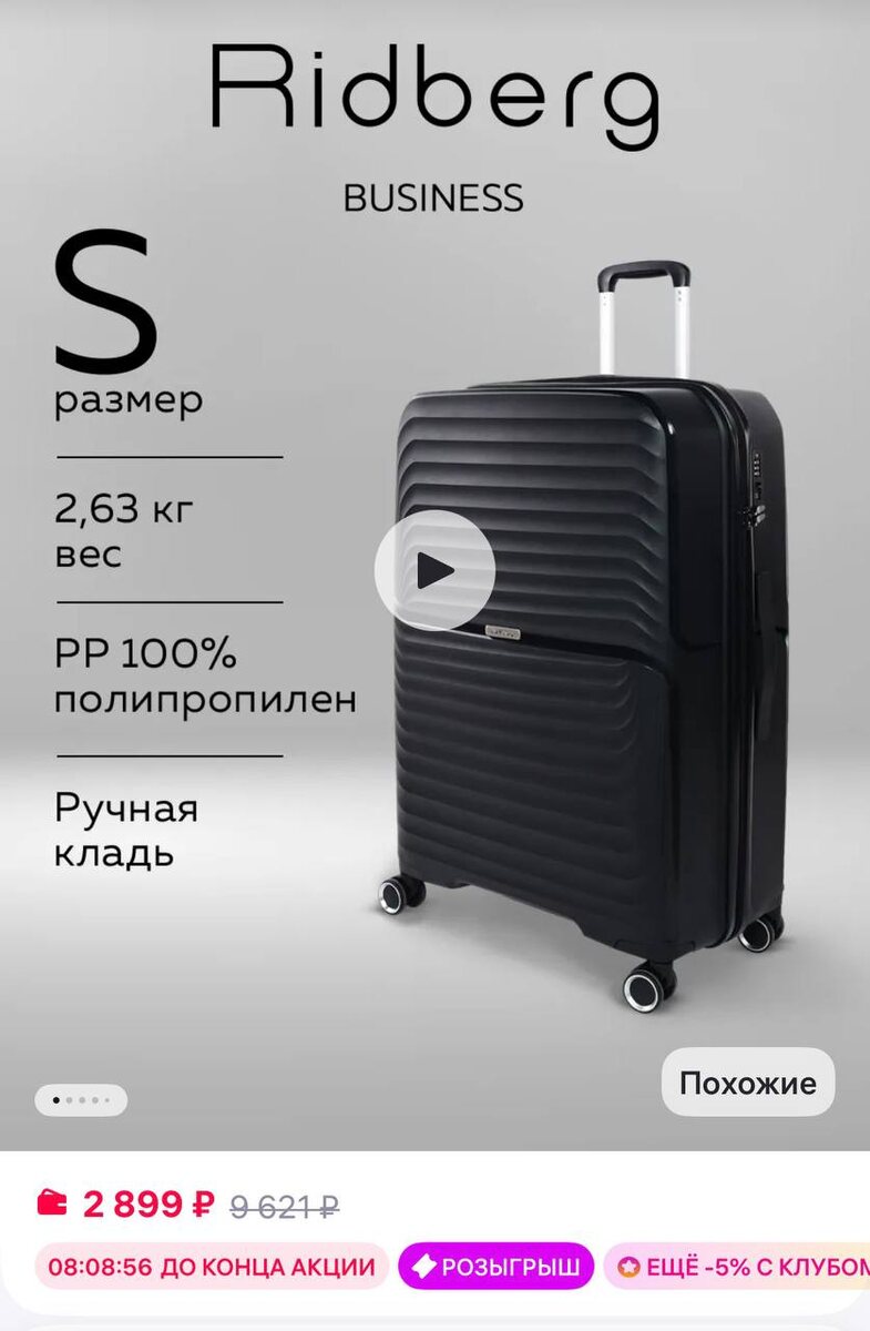 Ridberg Дорожный чемодан на колесах S ручная кладь