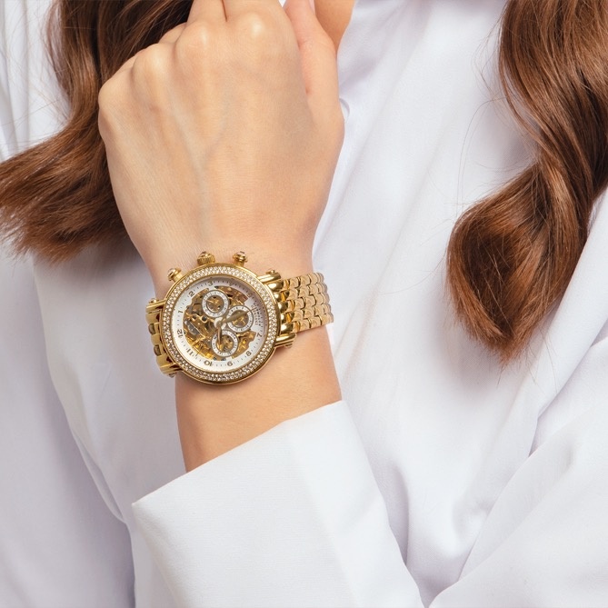 Наступает весна! А это значит, что все снимут перчатки, верхнюю одежду, рукава станут покороче, и захочется украсить запястья. А чем — подскажет Императорский бутик. Продолжаем курс на "тихую роскошь", но с одним нюансом. Аксессуары становятся чуть заметнее, чем одежда. Базовая одежда упрощается, и часы снова выходят в центр композиции. По механике спрос остаётся на практичные решения. Кварцевые модели выбирают за точность и удобство. Главный вектор сезона — светлая палитра. Перламутр, молочные оттенки, россыпь прозрачных камней. Всё это гармонирует с весенним настроением и гардеробом. Актуально сочетание металла и керамики, глянцевых и матовых поверхностей, декоративные элементы в чёткой геометрии. Подойдут тем, кто ценит практичность, но не хочет скучный аксессуар. Модель закрывает сразу три сценария, ведь в комплекте 3 сменных безеля: • Керамический — для офиса, встреч, повседневных образов.