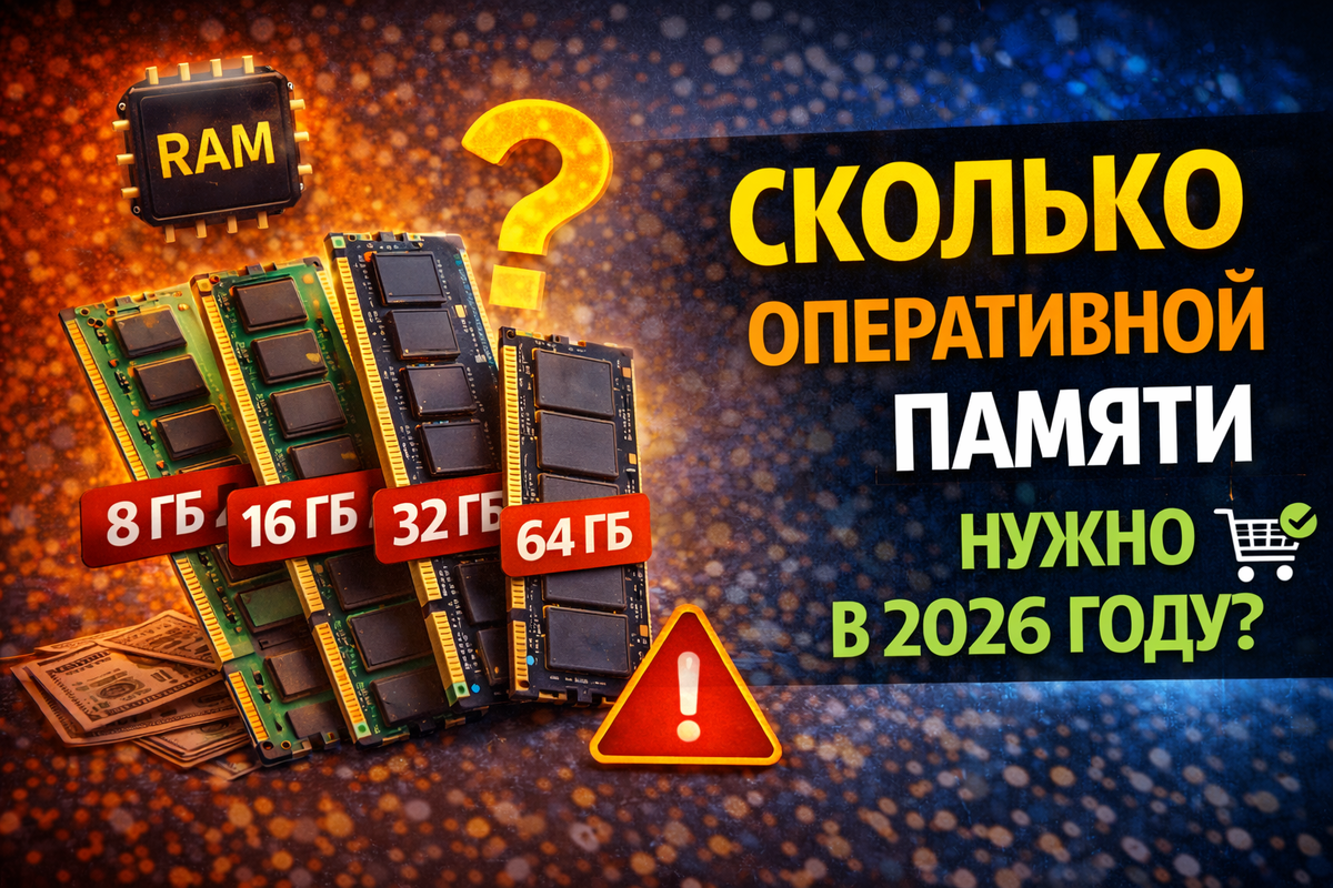 8, 16, 32 или даже 64 ГБ оперативной памяти — что выбрать? Ещё несколько лет назад 8 ГБ считались нормой. Но в 2026 году требования программ, игр и браузеров заметно выросли. Разберёмся, какой объём ОЗУ действительно нужен сегодня. Если честно, в 2026 году 8 ГБ — это минимум, который лучше избегать. Почему: Поэтому на компьютере с 8 ГБ часто возникают: ❌ тормоза при многозадачности