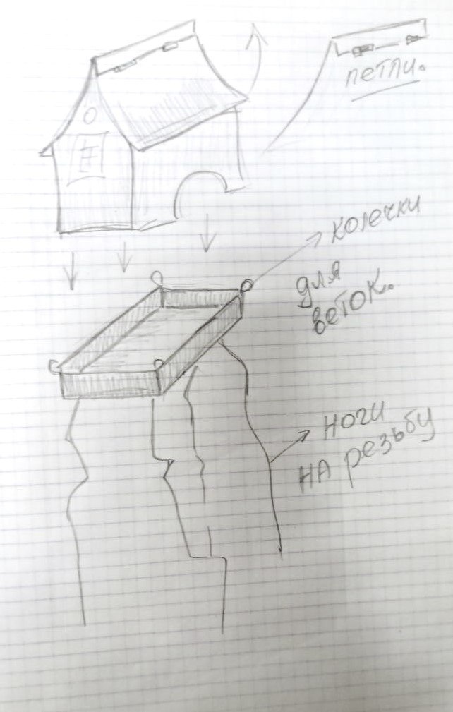 " . Дизайн Марии Принтц❤️ +Немного моего ИЗО)) Разрабатываю функционал. Чтобы кормушка была не только стильная, но и удобная и для человека, кормящего птиц зимой, и для птиц, и для доставки. Ноги однозначно д.б. отдельно, а то доставлять будет крайне неудобно и дорого. Крыша с одной стороны на петлях, чтобы можно было насыпать корм в лоток. И лоток тоже надо сделать отдельно, чтобы кормушку можно было почистить. Ну и колечки для веток, чтобы птичкам было комфортно садиться. Последнее - рекомендация орнитолога Ольги Бабушкиной. Да-да, начав делать кормушки для птиц, мы консультировались со специалистом👌 Наша благодарность Ольге за помощь❤️