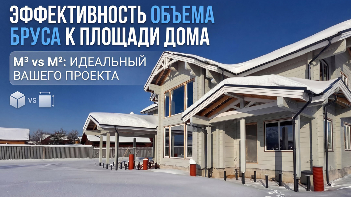 Дом Грейлэнд — наш ответ. Мы считаем оптимальным соотношение объёма клеёного бруса к полезной площади дома — 1:2. В этом проекте:
