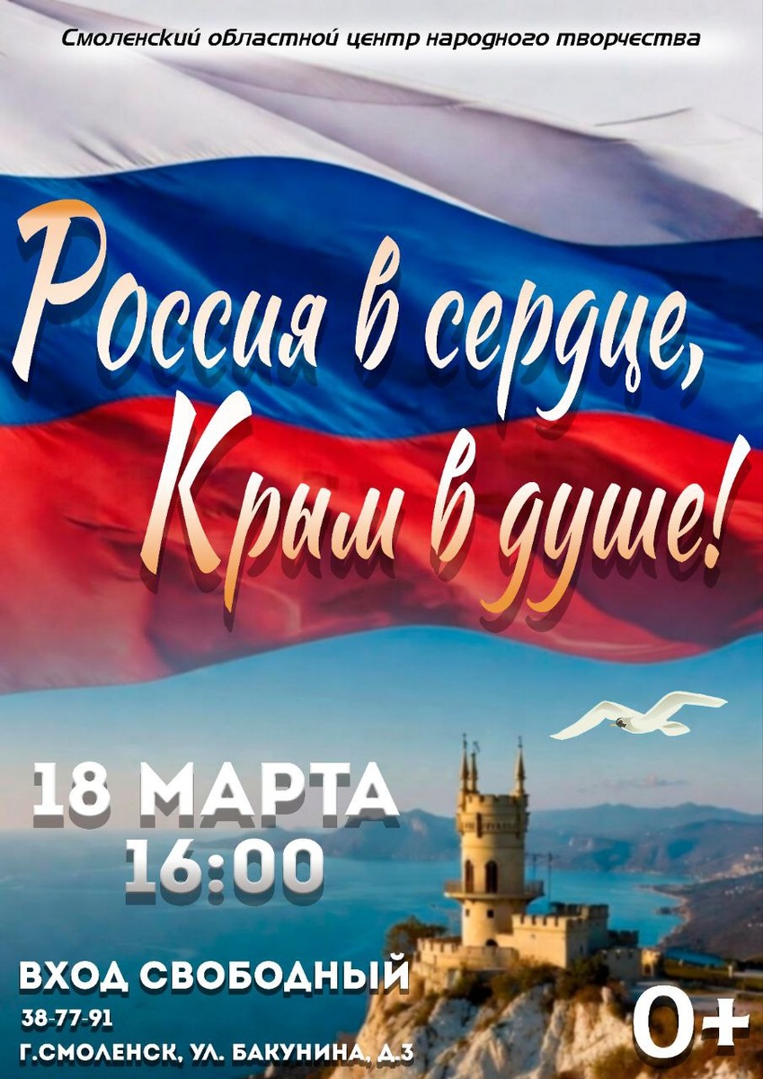 🇷🇺18 марта в 16:00 в Центре народного творчества состоится праздничный концерт, посвящённый Дню воссоединения Крыма с Россией