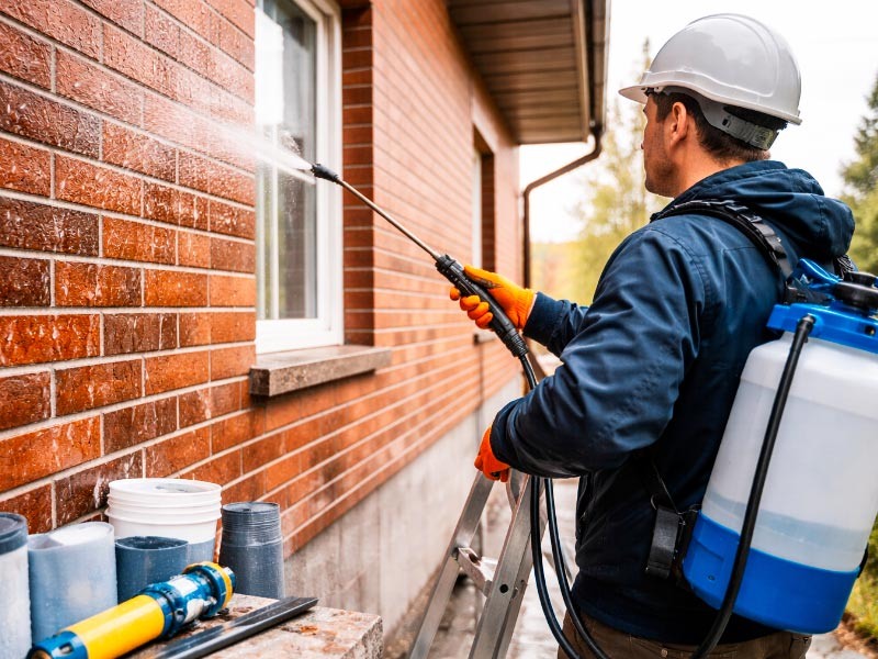 Влага в фасаде — это не только некрасивые пятна после дождя. Когда вода попадает в поры, трещины и стыки, зимой она замерзает и расширяется. Из-за этого быстрее появляются сколы, отслоения и мелкая сетка трещин. Чаще всего проблема начинается в слабых местах фасада: Особенно сильно это заметно в ветреную погоду, когда косой дождь буквально загоняет воду в щели. Признаки, что фасаду уже нужна защита: Работы идут в двух направлениях: сначала убирают слабые места, потом защищают саму поверхность. Если вода проходит через стыки, начинают с герметизации. Повреждённые участки очищают, при необходимости ремонтируют основание и формируют эластичный шов, который выдерживает температурные подвижки. Если влага впитывается по всей площади, используют защиту поверхности с учётом материала стены и отделки. Для фасада используют разные решения в зависимости от задачи: Сначала важно понять, откуда именно приходит вода: через шов, трещину, примыкание или из-за неправильного водоотвода. Если проблема ло