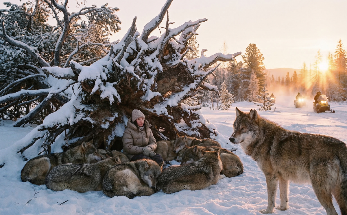 Повинуясь этому невидимому, но непререкаемому приказу своей предводительницы, остальные волки бесшумно подошли ближе. Они не скалили страшные клыки и больше не издали ни единого звука. Один за другим они послушно ложились на снег, образуя плотное, смыкающееся живое кольцо вокруг поваленного дерева и замерзающей женщины. Их массивные, пушистые тела создали надежную, непреодолимую преграду для ледяного пронизывающего ветра.