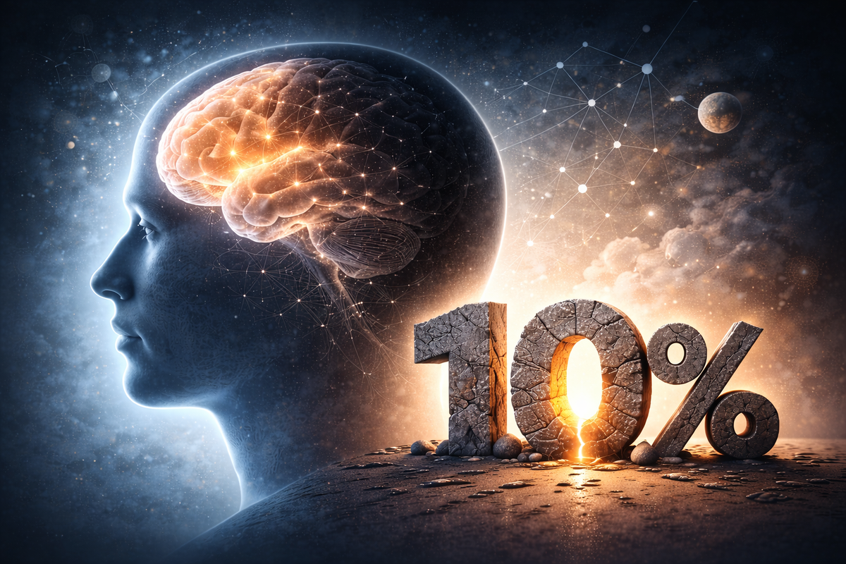Фраза про «10% мозга» живёт уже много лет. Её повторяют в книгах, фильмах, мотивационных выступлениях и просто в разговорах. Она хорошо запоминается, потому что обещает нечто очень заманчивое: в каждом человеке будто бы спрятан колоссальный резерв, который можно однажды включить.