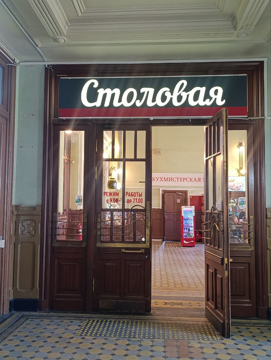 Витебский вокзал меня конечно очаровал, но вот столовая на вокзале прямо удивила. На вокзале я кушала один раз, это было на Ладожском вокзале в Санкт-Петербурге и была очень сильно разочарована ценой, качеством еды, а про обслуживание даже и говорить нечего. Нагловаты дамы восточной национальности – лишь бы продать побольше. Здесь я зашла что бы подождать экскурсию и выпить чашечку кофе максимум с пирожком. Столовая соответствует стилю вокзала. Новая мебель очень чисто. По ценам, даже не знаю, что-то я не успеваю за ростом цен в общепите, так что предположу, что адекватные. Уровень обслуживания просто шокировал. Разве что, не было обращения «Дамы и Господа». Все пояснили, посоветовали и накормили. Кофе и блинчик оказались вкусными. Последний шокирующий момент, мужчине, который захотел попить свой кофе из своей чашки налили горячей воды. Вроде мелочь, а так мило. Теперь обязательно будем сюда заходить в ожидание поезда.