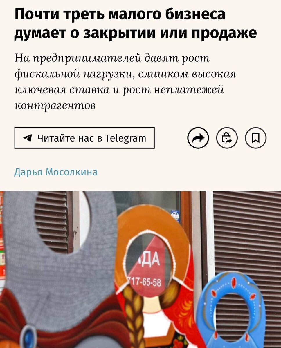 Основные причины — рост налогов, высокая ключевая ставка и неплатежи контрагентов, следует из совместного исследования ФОМ и ВШЭ. Ожидания предпринимателей ухудшились до рекордных значений: половина опрошенных уверена, что ситуация будет ухудшаться. Доля малого бизнеса, находящегося в режиме выживания, достигла максимума за последние пять лет. ⚡️ Первый Бизнес в MAX