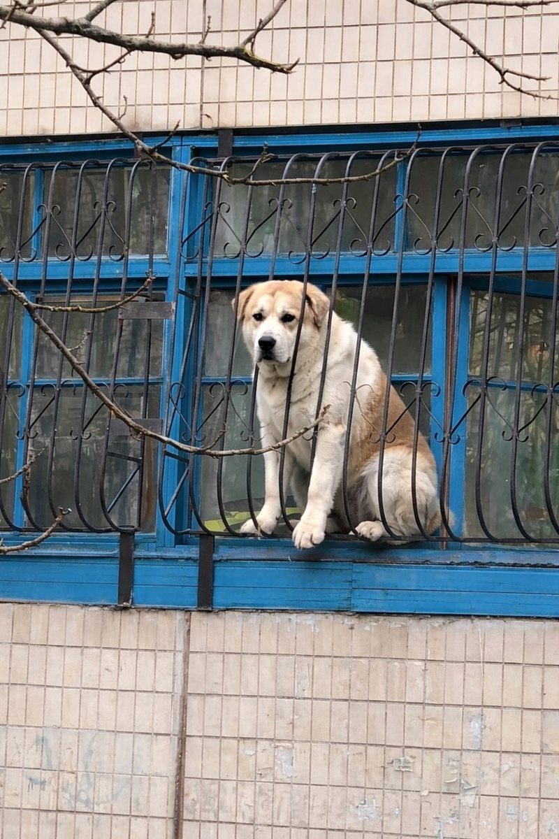 ‼Городские виды: кто следит за тобой с 2 этажа? 🐶 #АлабайНаДежурстве