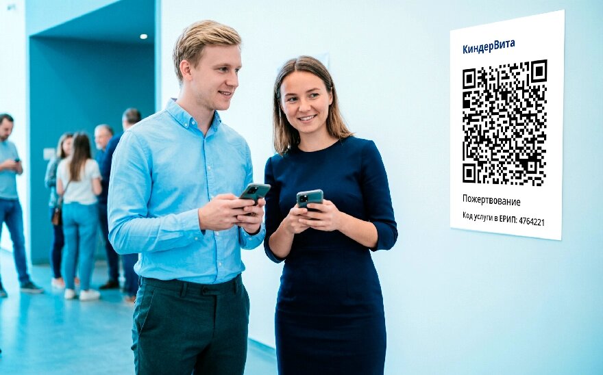 Рассмотрим, как можно осуществить онлайн-платёж по QR-коду на примере социально-благотворительного учреждения «КиндерВита», помогающего детям и молодым людям с онкологическими, гематологическими и иммунологическими заболеваниями.