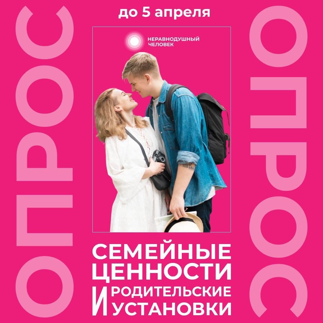 ! На платформе «Неравнодушный человек» стартовал опрос «Семейные ценности и родительские установки» для студентов и сотрудников. Расскажи, что ты думаешь о браке, ценностях и о том, как государство может помочь молодым семьям. Твои ответы помогут сформировать реальную картину взглядов молодёжи и оценить, насколько эффективны существующие меры поддержки студенческих семей. 🗓 Когда: со 2 марта по 5 апреля 👥 Кто участвует: студенты и сотрудники 🔗 Ссылку на прохождение опроса можно получить в дирекции своего института. Поделись своим мнением и помоги сделать поддержку семей лучше! ❤️ #СПбГЛТУ #СПбГЛТУ_анонс 👻 МАХ | 📲 ВК | 📝 ДЗЕН