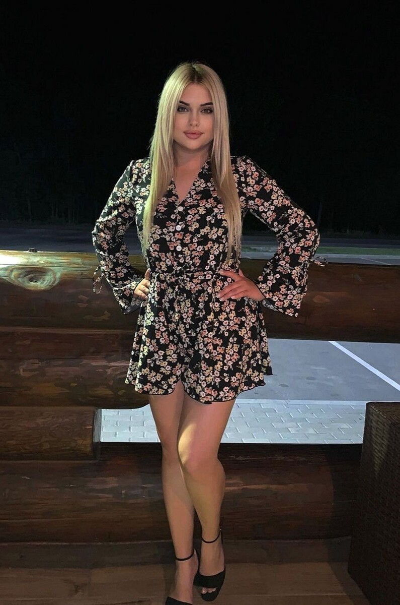 Светлые волосы, уложенные свободными волнами, обрамляют её лицо, придавая облику нотку игривой небрежности. Улыбка — тёплая, искренняя — словно приглашает в мир её радости и уверенности.
