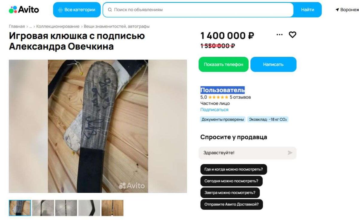 На 150 тысяч рублей подешевела выставленная на продажу в Воронеже клюшка с автографом звезды Национальной хоккейной лиги Александра Овечкина. Стоимость лота, размещенного на сайте объявлений «Авито», обновили в понедельник, 9 марта. По словам собственника раритета, форвард Washington Capitals оставил ему автограф во время локаута в НХЛ в сезоне-2012/13. Тогда Александр Овечкин непродолжительное время выступал в России за родное московское «Динамо». Продавцом является работающий в Воронеже детским тренером бывший игрок ряда клубов Континентальной хоккейной лиги и победитель молодежного чемпионата мира 2011 года в составе сборной России Никита Двуреченский. Впервые уникальный лот появился год назад – клюшку оценили в 2,5 млн рублей. По мере приближения Александра Овечкина к рекорду по количеству заброшенных шайб в регулярном чемпионате НХЛ раритет дважды дорожал – сначала до 2,75 млн рублей, а затем, когда форвард перешагнул заветный рубеж в 894 шайбы, – до 3,75 млн рублей. Только желающ
