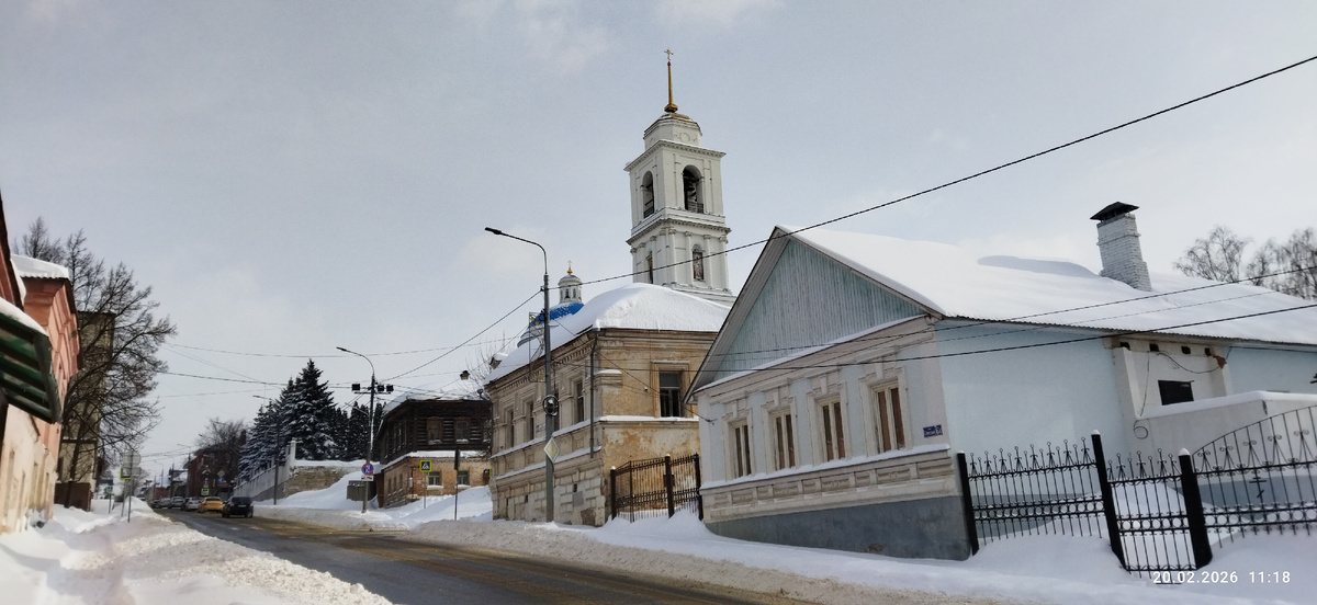 Далее на Калужской улице я подошла к церкви Николы Белого. Каменный собор построен в 1649 году, а потом в 19 веке перестроен из-за ветхости. С трудом соборс фотографировала, чтобы с крестами поместился.
