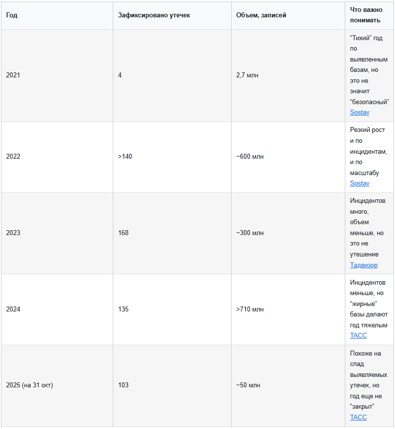 Ниже я собрал историческую сводку за последние 5 лет (в фокусе Россия), а потом без романтики расскажу, что делать, если ваши данные утекли, и как резко снизить шанс стать удобной мишенью.