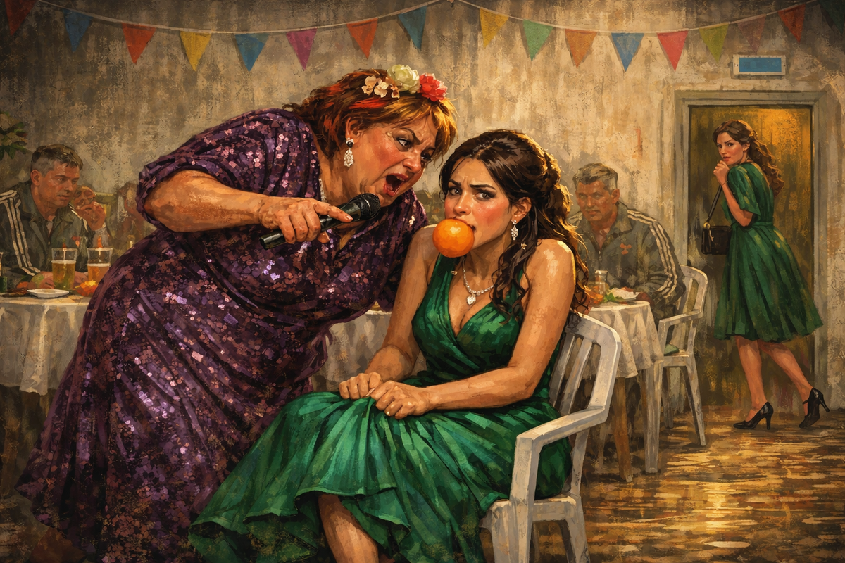 — Кто положит меньше тысячи, тот желает молодым нищеты и раздора! — объявила она на весь зал. — Ну-ка, Алина, покажи нам мастер-класс! Ты же у нас городская, богатая!