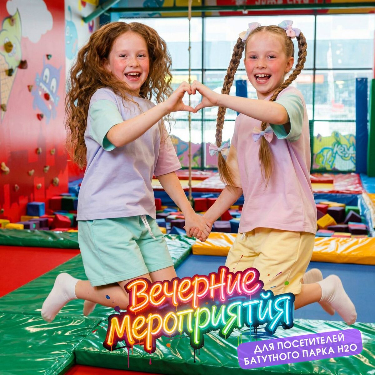 ! 🎉 Ждём Вас и ваших детей у нас в Батутном парке! Каждый день вас ждут мастер‑классы, челленджи, анимационная программа и ,конечно, батуты! Расписание программ на каждый день: Понедельник - Турнир по игре в вышибал Вторник - Челлендж по прыжкам на батутах Среда - Мастер-класс по аквагриму Четверг - Анимационная программа по мотивам "Игры в кальмара" Пятница - Анимационная программа "Лабубум" Суббота - Спортивное расследование "Куда делись прыжки" вместе с Джокером Воскресенье - Мастер-класс по изготовлению свечек из вощины Не выбирай, покупай билет и приходи каждый день с 18:30 до 19:30! Батутный парк H2O Каждый день с 10:00 до 22:00 ⏰ Пр‑т М. Нагибина, 34 📍
