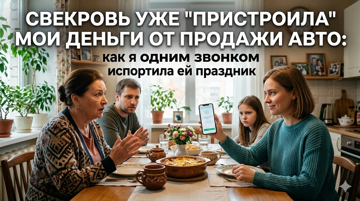 — Я перевела всю сумму с продажи машины, — продолжила я, глядя прямо в глаза свекрови. — Но не Ирине на диван. Я погасила остаток долга моей мамы за её лечение и внесла аванс за ту самую студию, о которой мечтала три года. Квитанции у меня в телефоне.