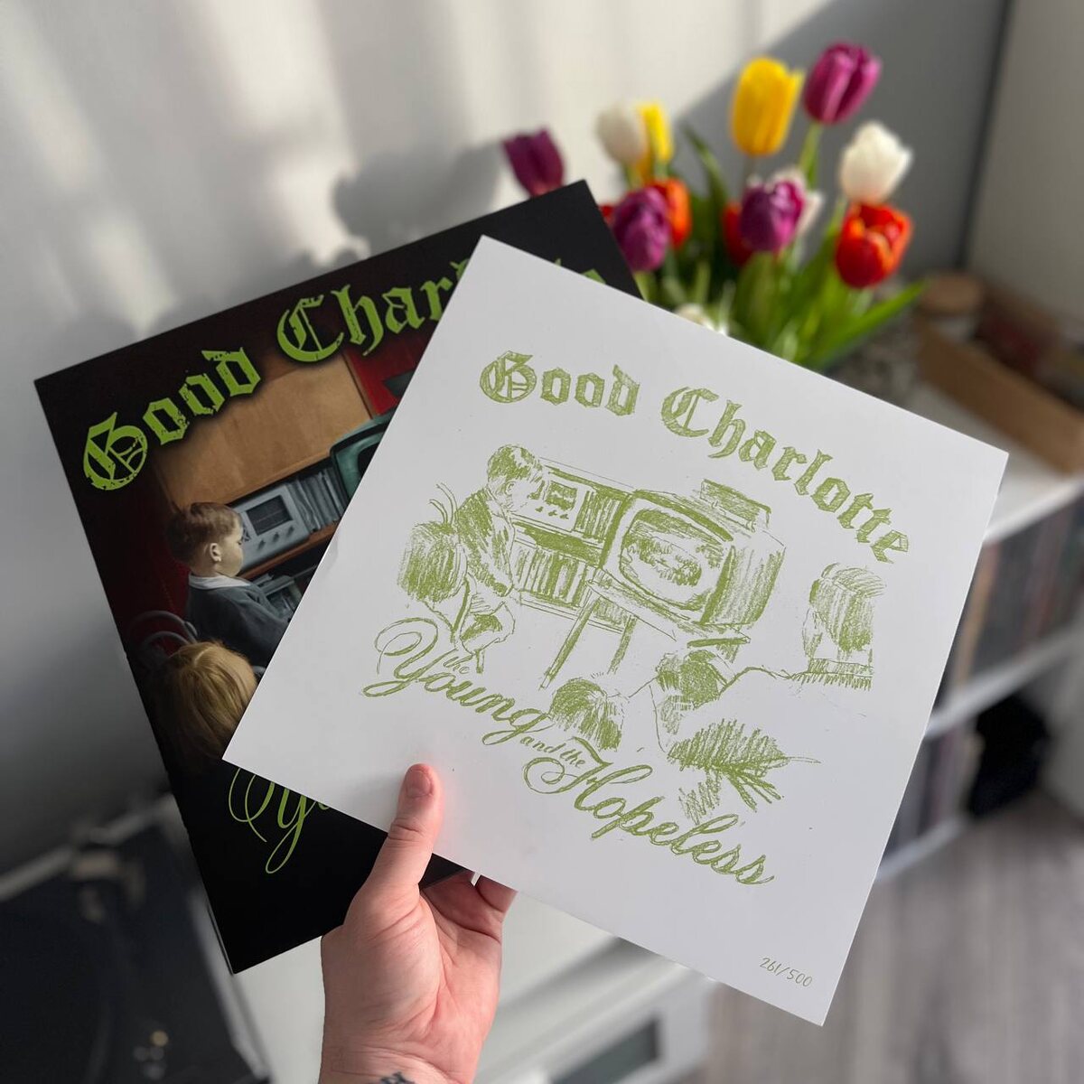 ) Спойлер: Халтурненько получилось. ...Еще в октябре, когда я выкапывал виниловые пластинки в японских магазинах (подробнее тут), мои горячо любимые Good Charlotte анонсировали лимитированное издание, пожалуй, самого коммерчески успешного альбома "Young and the Hopeless". 500 копий разлетелись буквально за 15 минут, ну а я стал обладателем еще одного издания этого альбома, за что, как обычно, спасибо Da Realized Vinylz (лучший сервис по доставке пластинок, и это, кстати, вообще не реклама). Внутри, в общем, всё как и обещали рендеры: тяжелый винил в цвете Yellow With Green Splatter, отсутствие внутреннего конверта, а вместо него глянцевый конверт, который по совместительству еще и вкладка с текстами. И главная отличительная черта этих переизданий — альтернативная обложка. Стоит сделать небольшой прыжок в недалекую историю: когда Good Charlotte выпустили свой последний на сегодняшний день альбом "Motel du Cap", сразу после выпуска группа заменила на стримингах все обложки предыдущих