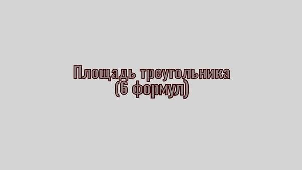 Такой вопрос я нашла в списке вопросов к устному экзамену. Честно скажу, на вскидку я смогла вспомнить только 5 формул. Шестую пришлось искать на просторах интернета. Именно ее мы и будем доказывать, но это будет в самом конце. Сначала перечислим все эти 6 формул. Возьмем произвольный треугольник АВС. Углы А и В острые. Во всех треугольниках два угла обязательно острые. Напротив угла А сторона a, напротив угла Bсторона b, напротив угла С сторона c. Мы берем произвольный треугольник, поэтому мы не знаем, какой угол С — тупой, острый или же прямой. Сторона напротив угла С у нас будет основанием нашего треугольника. Опустим на это основание высоту CD и обозначим ее h. Первая формула площадь треугольника через высоту и основание треугольника, на которое опущена эта высота. Читается формула: Площадь равна половине произведения основания на высоту (как вариант: стороны на высоту, опущенную на эту сторону). Следующая формула, нахождение площади треугольника, если известны две стороны и угол