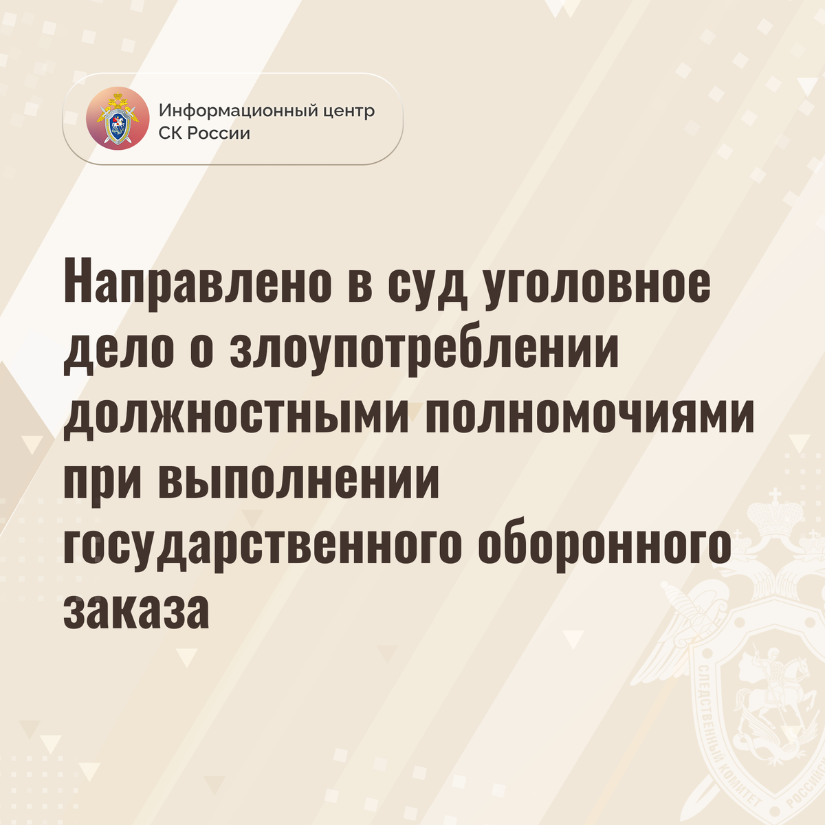 Направлено в суд уголовное дело о злоупотреблении должностными полномочиями при выполнении государственного оборонного заказа