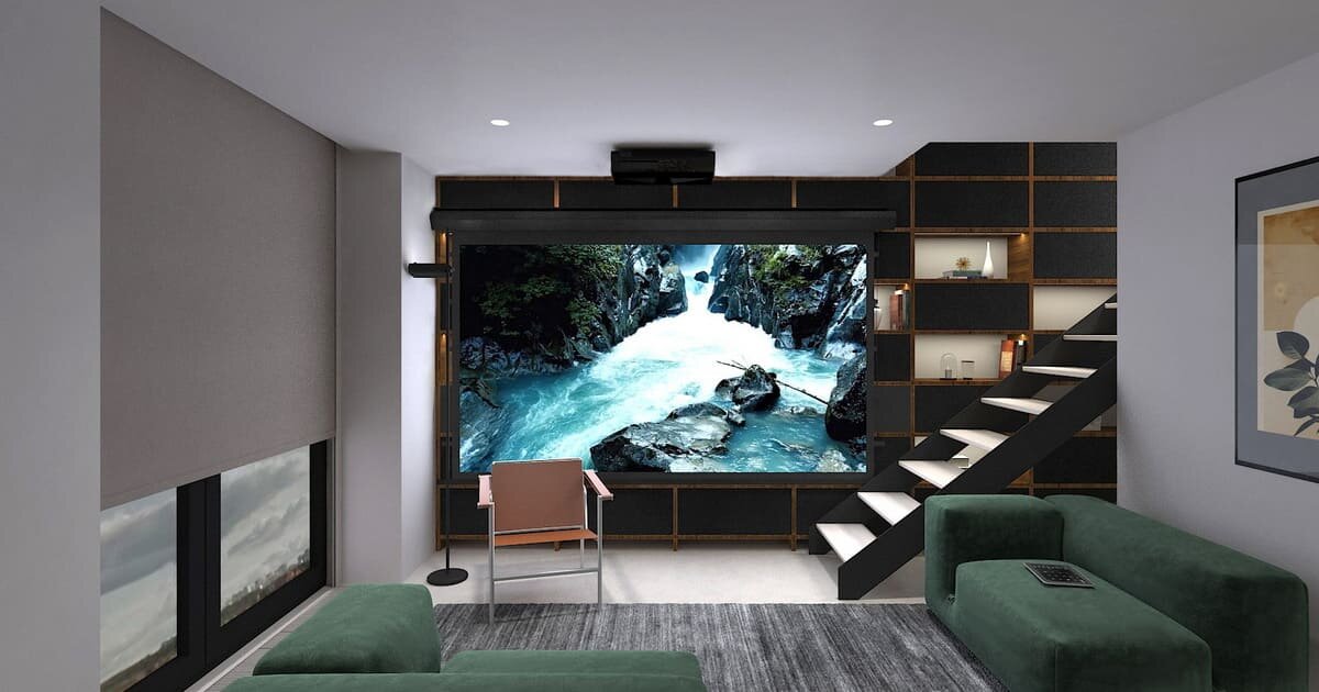 Название проекта: Композиция Тип: Квартира Место: г. Москва, ЖК Композиция Авторы: Artinstall Звук: 5.2 Статус: Завершён Этот домашний кинотеатр расположен в квартире с террасой и антресольным этажом. Квартира для активного мужчины, поэтому, несмотря на небольшую площадь, задача – максимально использовать пространство для жизни и отдыха. Идея домашнего кинотеатра в гостиной возникла на раннем этапе проектирования, поэтому нам удалось элегантно вписать всё оборудование в компактное пространство. Исходная константа – поверхность фронтальной стены будет закрыта стеллажами. Архитектор одобрил идею разместить часть оборудования в стеллаже. Нам выделили ячейки для фронтальных акустических систем, сами колонки решили оставить открытыми. Два активных сабвуфера разместили в нижних отсеках стеллажа, закрыв их рамками с чёрной звукопрозрачной тканью. В верхнюю часть шкафа мы смонтировали моторизованный экран со звукопроницаемым полотном. Проектор — ультракороткофокусный, так как для размещения ст