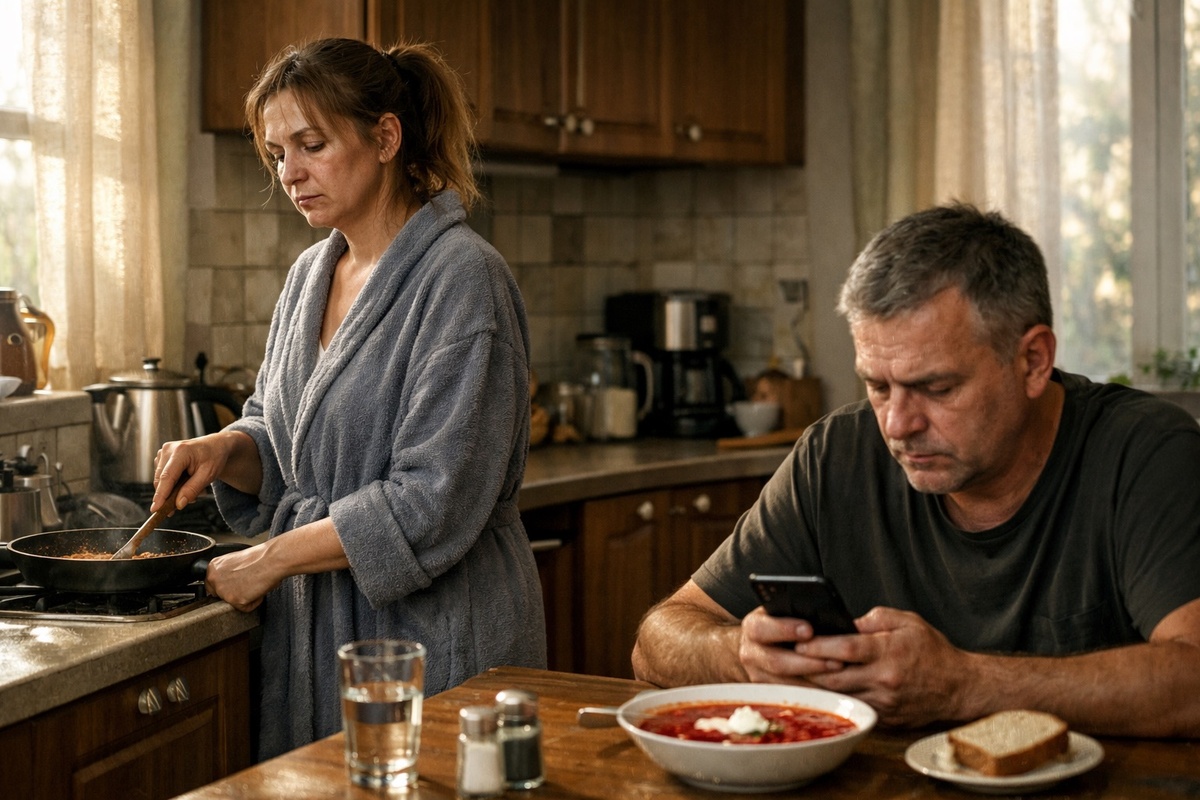 Таня вышла на кухню в растянутом халате, завязала хвост и молча отодвинула Петра от холодильника. Ей было сорок три, и она вдруг поймала себя на мысли, что смотрит на мужа, как на соседа по коммуналке. Вот он, мужчина, с которым она хотела состариться на берегу моря, а сейчас его привычка громко пить чай вызывает у неё лишь глухое раздражение.