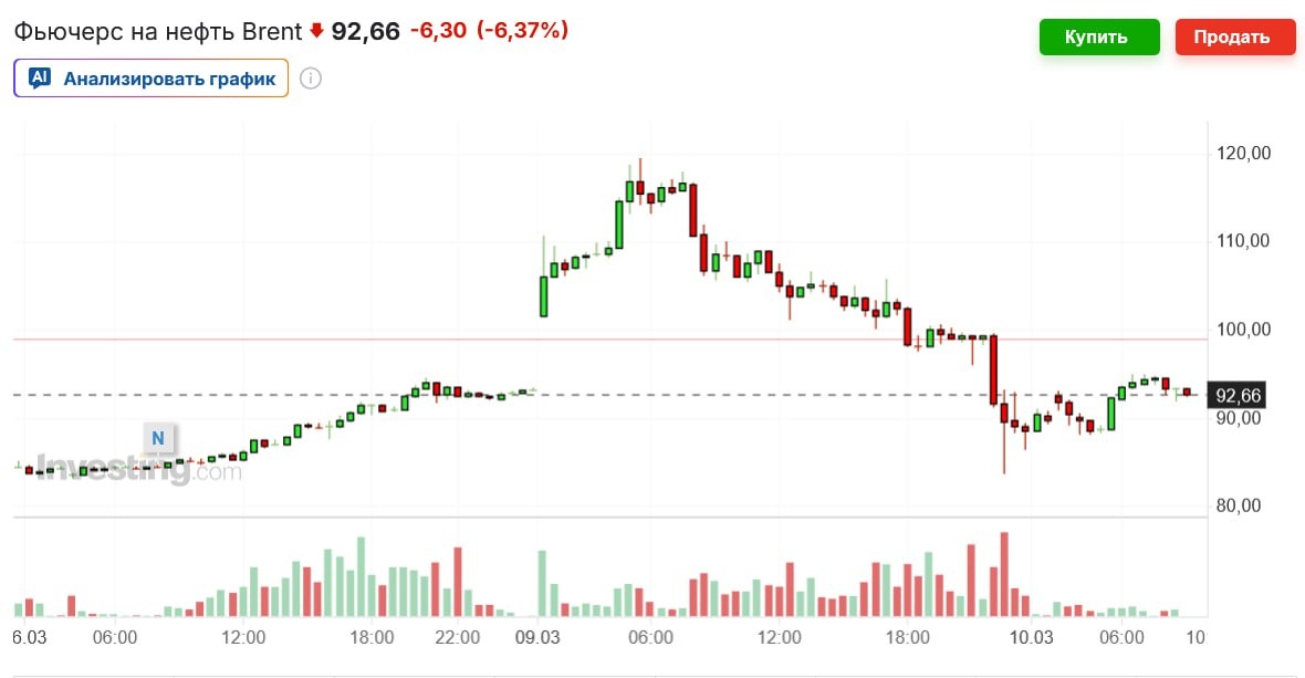 Как выглядит этот процесс? 1. Первый источник дохода для России в связи с иранской спецоперацией Трампа-Нетаньяху - повышение цен на нефть. Хотя оно непосредственно не касается российских сортов, но... как любят говорить трейдеры, «прилив поднимает все лодки». Цены на российскую нефть даже при сохранении тех же скидок поднимутся. Уменьшатся ли скидки в связи с общим сокращением поставок нефти на мировой рынок, пока неясно. Конкуренция российской нефти в танкерах в море с иранской ожесточенная. А покупатели у них одни и те же — Китай, Индия, Япония, другие страны Азии. Аятоллы-КСИРовцы скорее увеличат скидки, чтобы продать именно свою нефть. Но все же и российские нефтяники заработают - может, не столько на ценах, сколько на продажах и высвобождении танкеров, каждый день простоя которых с нефтью в море стоит миллионы долларов. Западным странам удалось сбить первую волну роста цен на нефть. Сбегав почти к $120/барр., она к вечеру 9 марта откатилась в моменте до цены ниже $90, устоявшись