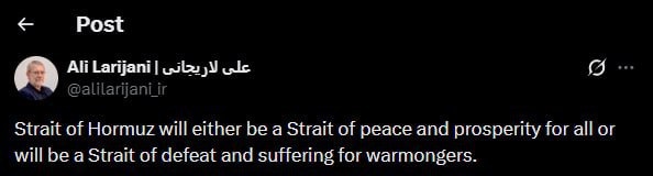 Секретарь Высшего совета нацбезопасности Ирана Лариджани предупредил о судьбе Ормузского пролива