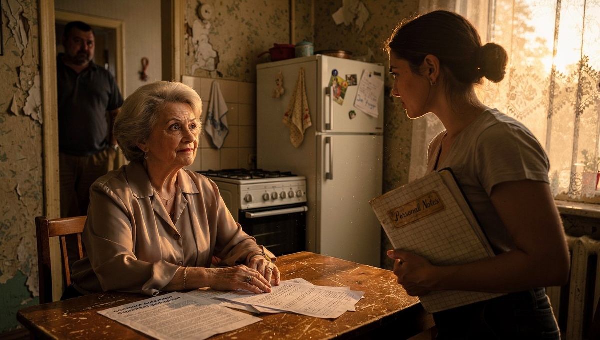 Свекровь молчала. Она переводила взгляд с тетрадки на документы и обратно, и в её глазах медленно гасла уверенность, как тлеющий уголёк под дождём.