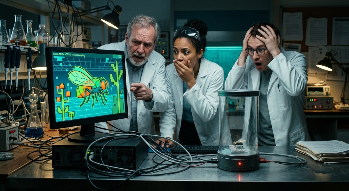 Что произошло 🔬 Стартап Eon Systems из Сан-Франциско создал первую в мире полноценную цифровую копию мозга плодовой мушки — дрозофилы. 125 тысяч нейронов и 50 миллионов синапсов загрузили в симулятор с виртуальным телом и гравитацией. Муха начала ходить, умываться и реагировать на раздражители — без единой строчки кода, которая бы говорила ей как это делать. Просто потому что её нейроны работают так же, как в живом насекомом. Чем это отличается от обычного ИИ 🤖 Вот здесь самое важное, и это легко упустить. DeepMind тоже делали виртуальную муху — она уверенно шагала в симуляторе. Но та муха научилась ходить через миллионы попыток, как нейросеть, которую натренировали на задачу. Муха от Eon не училась ничему. Она ходит потому что её нейроны — это буквально скопированный биологический мозг настоящего насекомого. Разница как между актёром, который идеально подражает Наполеону, и клоном самого Наполеона. Как это вообще работает 🧠 Основа — полная карта связей мозга дрозофилы, созданная ме