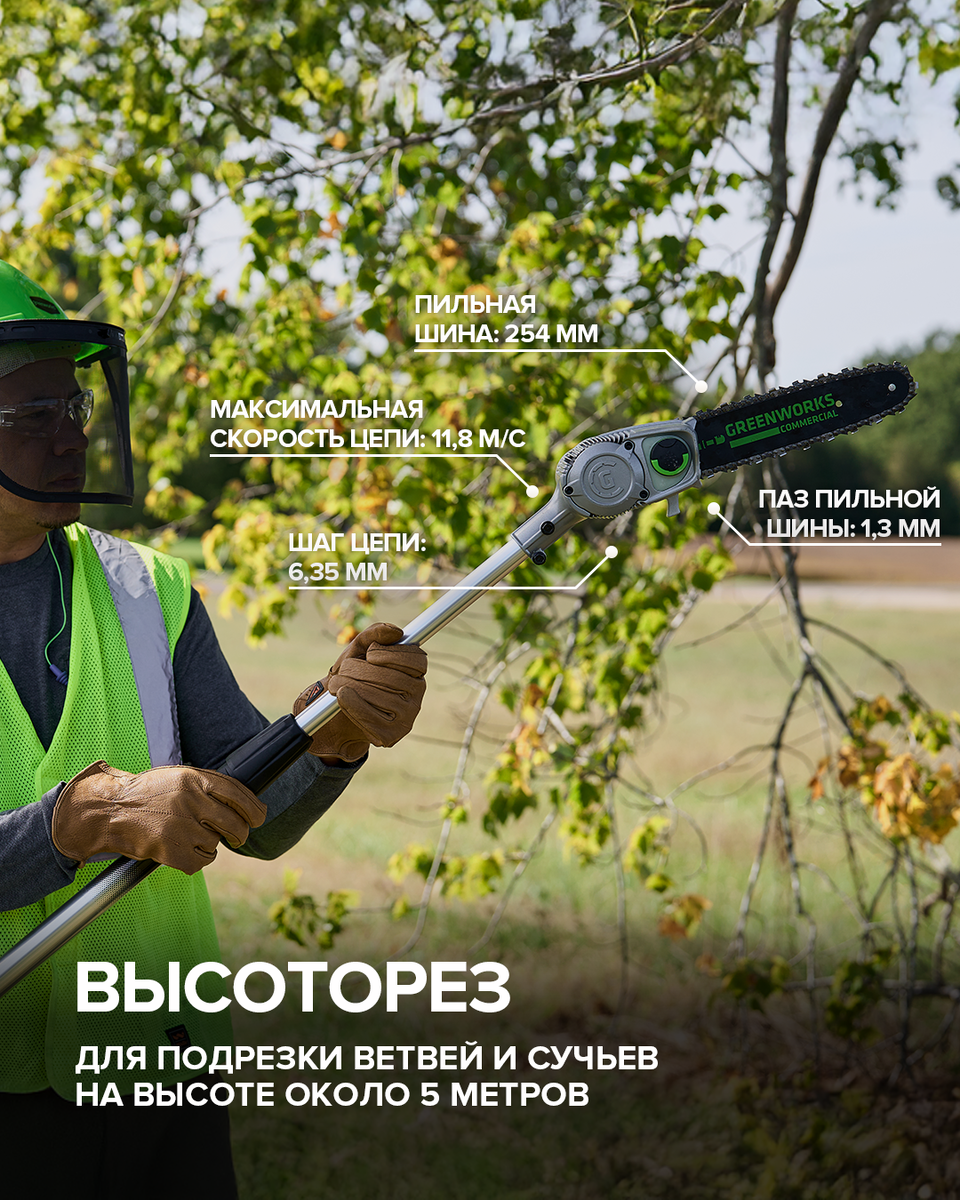 Greenworks GD82PS25 82V (1402207) — профессиональный аккумуляторный высоторез.