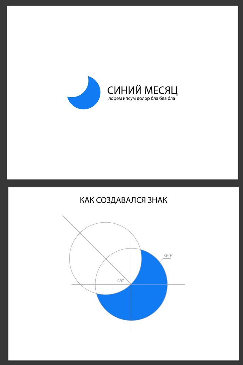 Если хотите, чтобы ваш знак выглядел дороже — добавьте к нему сеточку, золотое сечение там, биссектрисы, тангенсы-катангенсы. На первом слайде прост откушенный круг. А на втором уже не хухры-мухры, мы тут подумали, постарались, давайте плОтите нам. Признаюсь, я и сам в начале пути этим грешил.