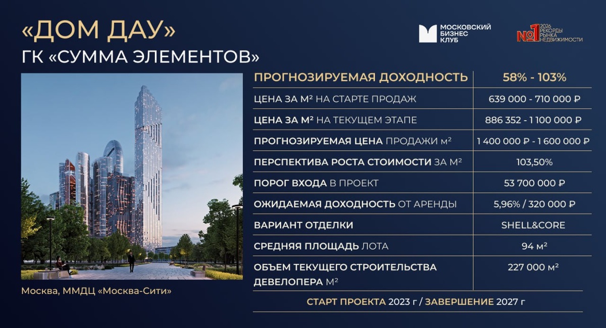 • Доходность: около 40% • Клубный квартал «Садовническая 69» — Балчуг Девелопмент