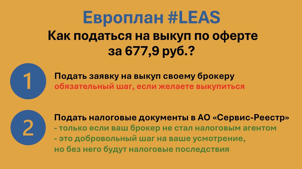 После подачи заявки ваши акции LEAS заблокируются под выкуп. То есть вы больше не сможете быстро и легко скинуть их в «стакан».